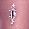 Schmuckmotiv mit silbernem Metalfaden und grauer Seide gestickt.