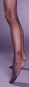 Unvergleichlich feine und sehr elastische, bestickte Feinstrumpfhose 14 den Lycra mit einer matten seidigen Optik, V-Slip, Komfort-Elast, kleinem Spickel, Ferse unverstärkt, Spitze leicht verstärkt.