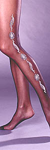 Unvergleichlich feine und sehr elastische bestickte Feinstrumpfhose 14 den Lycra mit einer matten seidigen Optik, V-Slip, Komfort-Elast, kleinem Spickel, Ferse unverstärkt, Spitze leicht verstärkt.